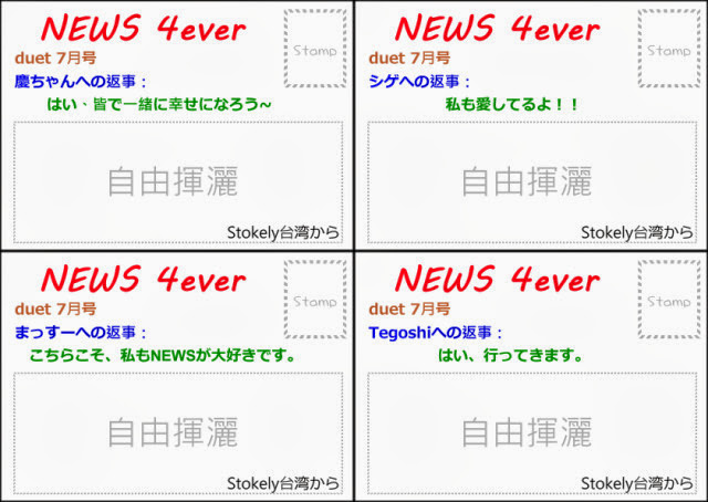 こちらこそ、私もNEWSが大好きです。 (我才要謝謝你,我也最喜歡NEWS了。)